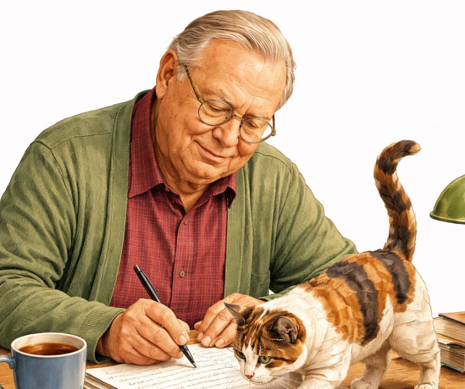 The morning arrived on four paws. It did not knock. It leapt lightly onto the desk, scattered a disciplined pile of papers into a small white rebellion, and settled its warm, breathing weight squarely across the final paragraph. The ink was still wet. The word “loneliness” lay half-formed beneath a soft grey belly, its tail…